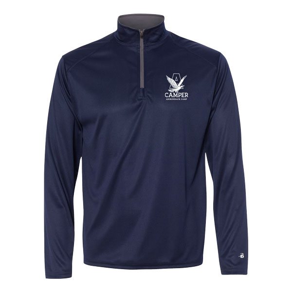 100% polyester moisture management/antimicrobial lightweight performance pullover—available in navy with logo.