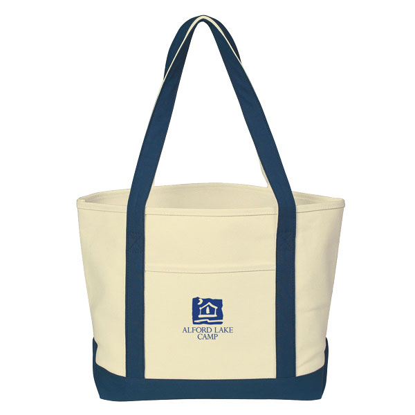 24-ounce cotton canvas boat tote—available in natural/navy with embroidered logo, with or without name. Measures 20˝" x 13" x 7".