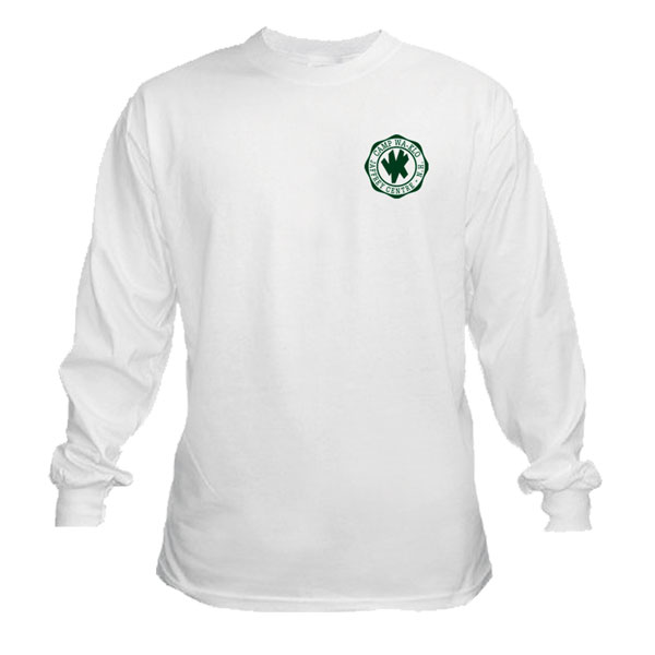 Heavyweight 100% cotton athletic-style long sleeve tee with traditional logo—available in white. (This top is optional and not considered an official required item.)
