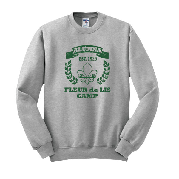 Cotton and polyester 50/50 blend, 7.8-ounce fleece crewneck sweatshirt—available in ash gray with distressed Alumna logo.