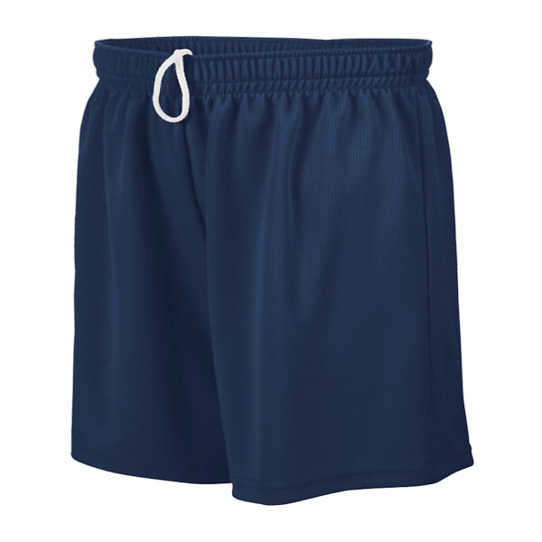Girls/Ladies fit 100% polyester wicking (wicks moisture away from the body) mesh short with drawcord and 5" inseam.