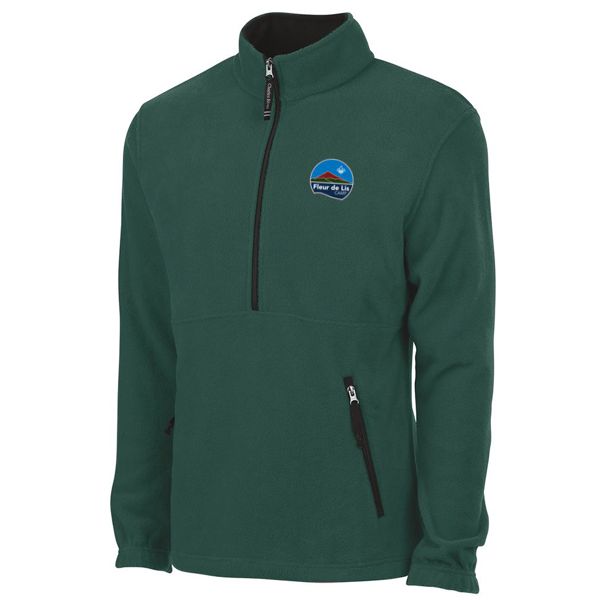 Warm, anti-pill brushed fleece half-zip pullover—available in forest green with embroidered logo.
