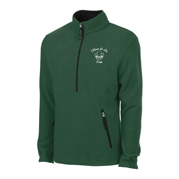 Warm, anti-pill brushed fleece half-zip pullover—available in forest green with embroidered logo.