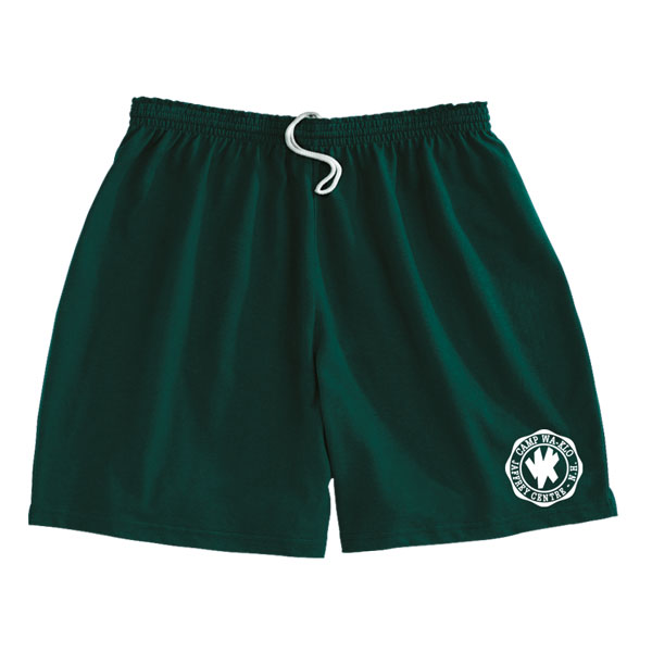 Cotton and polyester 50/50 blend jersey knit short with traditional logo; with elastic waistband and 4¾" to 6" inseam (varies by size)—available in both green and white.