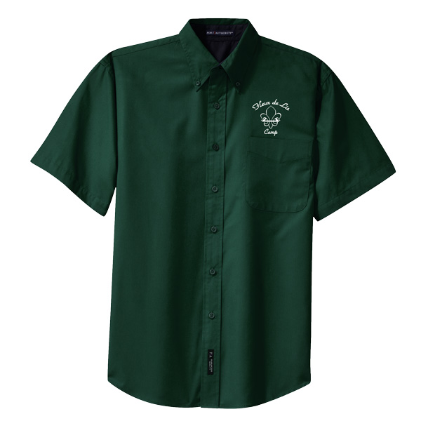 Cotton and polyester 55/45 blend, 4.5-ounce wrinkle resistant men's short sleeve dress shirt—available in green with embroidered logo.