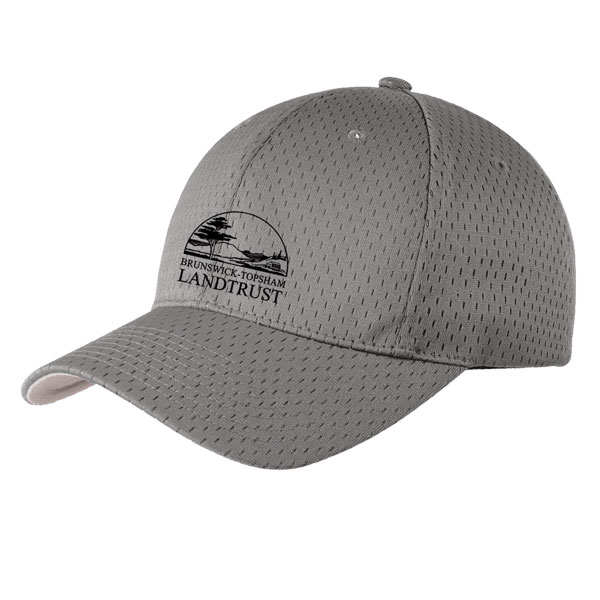 100% polyester mesh, mid-profile, structured baseball cap with hook & loop closure—available in silver, black and royal blue with embroidered logo.