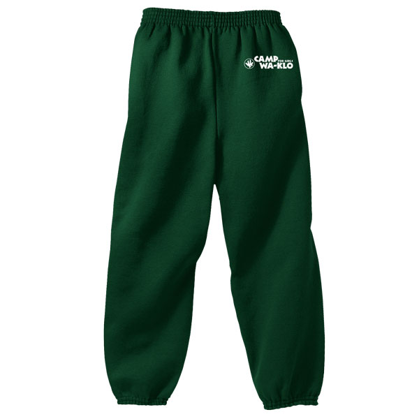 Cotton and polyester 50/50 blend, 9-ounce fleece sweatpants—available in green with current logo.