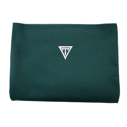 Cotton and polyester 50/50 blend, 9-ounce sweatshirt/brushed back fleece blanket—available in both gray and green with embroidered logo. Measures 54" X 80".