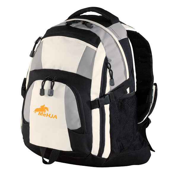 600 denier ripstop, all utility backpack that fatures padded handle and mesh back, suspended padded laptop sleeve, organizer pocket and waist, chest and side compression straps—available in gray/black and royal/black with embroidered logo. Laptop sleeve dimensions: 11.8"h x 11.6"w x 1.8"d. overall demensionsL 19"h x 17"w x 8.25"d.