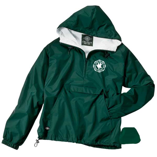 RiverTec™ nylon with water-resistant finish, flannel lining, elastic cuffs and drawstring at hem. Features its own pouch pocket to pack into—available in green with traditional embroidered logo.